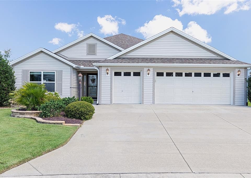 Welcome home! Beautiful 3/2 Lilac Designer model is located in the Village of Osceola Hills. Offered TURNKEY w/ NEW VENOM EV GOLF CART so you can ease right into The Villages lifestyle! Open concept great room and expansive kitchen are SLIDERS away from the ENCLOSED LANAI, under AIR for year round enjoyment and entertaining. The custom kitchen offers QUARTZ countertops, ample cabinetry, pantry w/ pull-outs, built-in wine rack, bar seating at the island and breakfast table space. You'll find a neutral palette throughout the home accented by custom wood cornice boards for a special touch. The spacious primary suite features tray ceiling, a luxurious bathroom with QUARTZ dual vanities, Roman shower, toilet closet and large WALK-IN CLOSET. Private guest bedroom at the front of the home boasts a vaulted ceiling, lots of natural light and space w/ a closet, while the second bedroom is spacious with double-door closet. The shared bath w/ nearby linen closet offers a tiled step-in shower and QUARTZ vanity for your guest's comfort. The conveniently located laundry room includes large desk space, cabinetry, sink and a storage closet. Steps away is the 2 car + GOLF CART GARAGE with additional STORAGE closet for all your needs. This lovely home is located on a CUL-DE-SAC with the Soaring Eagle Preserve behind. Close to Belle Glade Country Club and Championship Golf Course, numerous recreation centers and short ride to Brownwood Town Square and Sawgrass Grove. VIEW THE VIRTUAL TOUR and set up an appointment to see it in person soon!