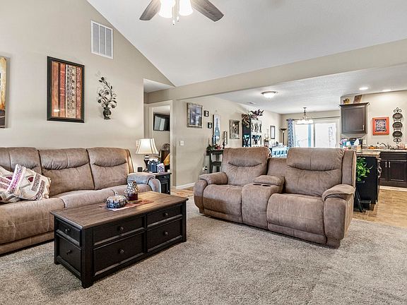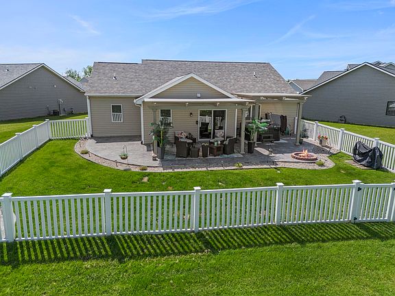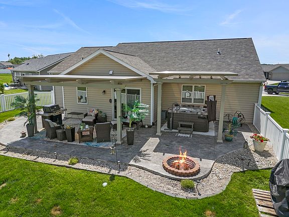 This stunning ranch-style home features a desirable split bedroom concept, with three bedrooms, two full baths, and a versatile bonus room perfect for an office, playroom, or additional living space. Greeted with vaulted ceilings, a drop-down fan in the living room, and a beautiful open-concept kitchen and entertaining area. The outdoor area is a true highlight, boasting two WA Zimmer remote-controlled pergolas and a Cali Spas 6-person hot tub, ideal for relaxation and entertaining. The backyard is beautifully landscaped with a huge stamped concrete patio and a built-in fireplace and all completed in 2022, creating an inviting space for gatherings and outdoor enjoyment. All landscaping around the entire perimeter of the home was redone in 2023. Conveniently located near the YMCA and a scenic bike path, this home offers excellent opportunities for recreation and fitness. Additionally, it is just a short trip to Walmart, providing easy access to shopping and daily necessities. This home combines comfort, convenience, and luxury, making it an ideal choice for any lifestyle.