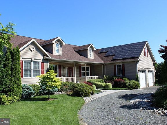 A real stunner awaits with this custom built ranch style home on a professionally landscaped 1.5 acre lot. From the front porch enter into the large foyer, with pillars, flanked by a spacious dining room and a home office/library with pocket doors. This leads to the great room with a vaulted ceiling. The gorgeous kitchen, with white oak high end cabinets, double ovens and granite counter tops is open to the sunny breakfast nook and open to the great room. Ready for entertaining and everyday living, the flow of the home is wonderful. Two bedrooms and a full bathroom are situated on the left side of the home. The master bedroom boasts a bump out with its own door to the back deck, two closets(one is a walk in) and an en-suite bathroom with a large shower and a Jacuzzi tub with a built in water heater system. Watch the seasons unfold from the back three season/sun room or from the large back deck. The basement is partially finished with a big living room and a full bathroom. This room could also be used as an additional bedroom. Storage abounds with the remainder of the high, dry basement, the two car garage and the hidden utility shed under the sun room. The solar panels(no lease/owned by current homeowners) and geothermal heat/air conditioning system ensure that you are kept comfortable all year round with reasonable utility bills. FIOS is available here. This home has been meticulously maintained and is ready for its new buyers today. Surrounded by open space and horse pasture, your piece of paradise awaits. Come see this one of a kind home today.