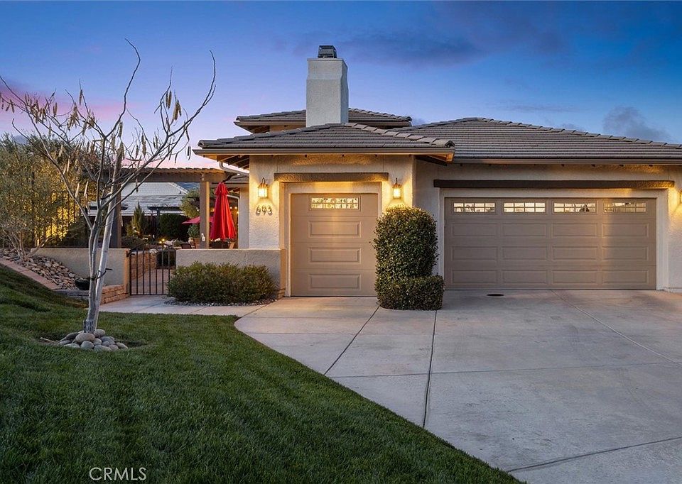 Every Picture Tells a Story. Welcome to Traditions the most sought after 55+ gated community in the Paso Robles Wine country. This may possibly be the best home in the community. Located along the view corridor on a remotely private cul-de-sac this property is almost double the area of other lots in the sub-division. Absolutely gorgeous professional landscaping featuring Europa retaining walls and pavers and beautiful plantings carefully selected for the Paso Robles climate. Many redwood trellises adorn the pathways and patios that pull you from one tranquil sitting area to another. There are many seating areas around the entire yard including the outdoor fireplace as well as various areas to experience an outdoor dining party as your quests admire the Colorful western sunset over the Paso hillsides. The extensive landscape is fully irrigated with a low use water system and the entire patio has a fully integrated drainage system. The residence is not to be outdone by the beautiful courtyard which is just the beginning of your tour. The exterior of this home has recently been fully painted with high quality elastomeric paint. As you enter through the beautiful custom door you are immediately are taken back by all the owner upgrades this property has. Crown Moldings everywhere, Plantation Shutters and and high end window coverings throughout. Quartz Stone countertops all recently installed. Quality Cabinets with pull out shelves and a Kitchen has newer high end Stainless appliances including a Wine refrigerator. Wood and Tile floors extend throughout. Just off the Kitchen is the perfect dry bar to entertain your guests and down the hall is a fantastic indoor laundry with extensive cabinets. The Primary Bedroom is to die for and has a completely remodeled bathroom with high end plumbing fixtures, And by the way the other bathroom was also remodeled to the same impeccable standards. There is a large two car garage with built-ins and an adjacent golf cart garage that is currently being used as a workshop. As part of the Traditions at River Oaks all members enjoy access to the Clubhouse, Olympic sized pool, Fitness room, Library and Spa. Within walking distance is a professionally designed 6 hole golf course and restaurant. Shopping, Wineries and the Cuesta College North County campus are a short distance. Enjoy Outdoor gatherings with your friends, The first class amenities of the Association, or even expanding your horizons at the College.
