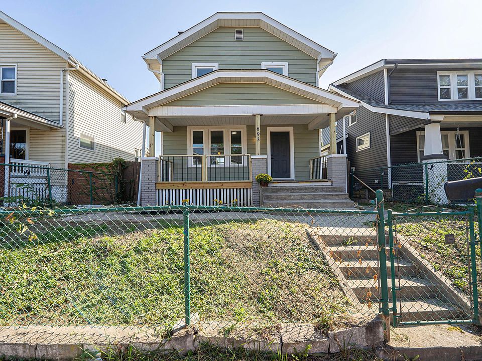 HUGE PRICE CHANGE! This stunning home qualifies for Park National Bank's $15,000 grant program! Welcome to 693 Thurman Avenue- conveniently located at the edge of Southern Orchards & Merion Village, with easy access to German Village cafes, parks, and shops! This spacious 3-bedroom, 2.5-bath home is freshly renovated with brand-new windows, HVAC with central A/C, plumbing, and electric, offering move-in confidence. Step inside to a modern, open layout with fresh paint, LVP flooring, & abundant natural light. The inviting living room features a decorative brick fireplace with built-in shelving, flowing seamlessly into the dining area & brand-new kitchen. The kitchen steals the show with granite countertops, stainless-steel appliances, & a stylish island framed by pendant lighting. There are tons of storage options available in the open kitchen with abundant cabinet space, & a closet pantry ready to customize with shelving. A convenient half bath sits on the first floor, along with a flexible back room that could serve as extra storage, or a mud room. The basement adds even more functionality with its own full bath- perfect for guests, a home office, or a workout area- with potential to finish into additional living space. Upstairs are 3 comfortable bedrooms with plush carpet and a beautifully updated full bath. The main bedroom includes 2 closets for extra storage, and the bathroom is newly tiled with modern finishes plus a convenient laundry hook-up area. Outside, enjoy the all-new covered front porch, perfect for morning coffee or relaxing evenings. The fenced-in backyard includes a carport with an electric garage door, ideal for 3 parking spaces, & an attached storage shed -a rare find for this area. With its thoughtful renovation, move-in-ready updates, & prime location near Schiller Park, Southern Orchards, the Brewery District, Nationwide Children's Hospital, & downtown Columbus, 693 Thurman Avenue is a smart investment & a beautiful place to call home.