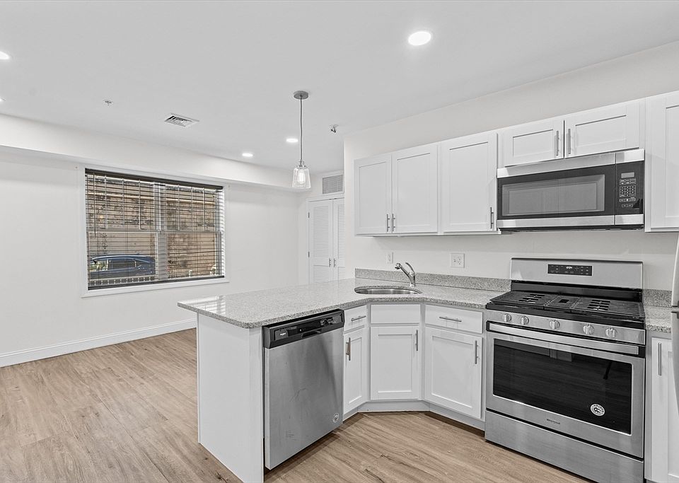 Luxury 1st Condo, built in 2019, low fees and low maintenance, 639 Western Avenue offers the perfect mixture of location and modern amenities. You will be just the 2nd owner of this conveniently located 1st floor condo that has been kept well maintained. There is plenty to like, this unit features an open floor plan, high ceilings, recess lighting, stainless steel appliances, granite, kitchen island or peninsula w/ stunning pendant lighting, washer & dryer in unit, central air, 1 deeded parking space included, pre wired for Fios & Comcast. Building features Video Airphone Intercom System, pre-wired Security Systems, extra wide common spaces, elevator building Great commuter location. Situated on Rte.107, steps to major transportation, 4.2 miles to Wonderland Station, 1.8 miles to Lynn Woods & area beaches, short walk to the downtown, arts district, Lynn Auditorium, top notch eateries, murals, museum, dog park & more.