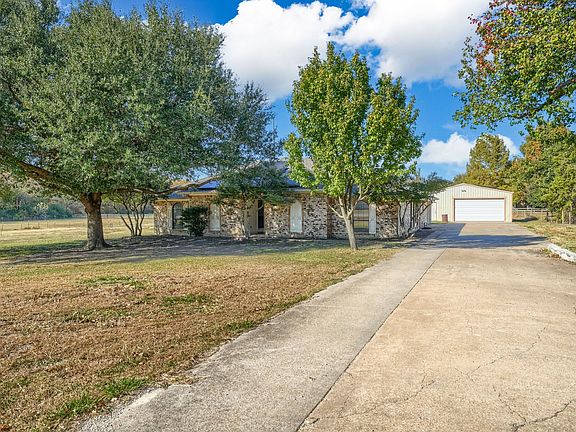 This is an AS IS PROPERTY, below market value and located outside the city limits. I’m thrilled to present an exceptional opportunity to own a wonderful one-story, four-bedroom, two bath brick home with 2 car garage that is situated on 1.39 acres in the award-winning Wylie Independent School District—just minutes from the scenic shores of Lake Lavon. This cul-de-sac property offers a fully fenced, area perfect for all your pets. The home features a wonderfully designed floor plan, including a primary ensuite bedroom with walk in shower with double vanity. Oversized living room with a cozy wood-burning brick fireplace. From here, enjoy views of the covered patio, a fenced pool area, ideal for outdoor family and friends entertaining. Adding to the appeal is a separate 30x35 metal garage workshop, complete with electricity, and dual garage doors for easy access. Whether you need space for vehicles, lawn equipment, or recreational gear, this versatile structure is ready to serve. Included are the solar panels that are installed on both the home and the detached garage, offering energy efficiency and long-term savings. This ranch-style home provides privacy and room to personalize so bring your creativity. With nearby access to shopping, restaurants, schools, so, convenience is never far away. If you’re seeking a peaceful lifestyle with room to grow and the freedom to make it your own, this property is must-see. Buyer to purchase new survey.