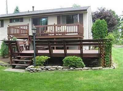 Dreaming of Lake Erie views and breezes? Then check out this spacious split level with plenty of extras and amazing Lake Erie views! Plus a 68x24 Ft heated garage with 220, heat, office space, and room for both boats and cars! Great for a car buff or someone looking to run a home based business. Open floor plan on first floor features formal living room, dining room, and updated eat-in kitchen. Kitchen features Amish custom cabinets and a built in kitchen tables with matching chairs. Off the kitchen is a HUGE multi-tiered deck with a retractable awning. Amazing basement has a rec room with ceramic tile and an attached spa bathroom. Could easily be turned into a large Master or in-law suite with the glamour bath and walk in closet currently used for storage. Huge, nicely landscaped yard, corner lot. In addition the huge decks, patio area off of the garage. Great location just minutes to wineries, marinas, beaches, and golf courses. Top rated Madison schools.
