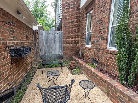 Spacious East Memphis 3 bdr/2.5 ba townhouse in a perfect location in the back of the neighborhood w/mature trees, & privacy. Lovingly cared for one-owner home. Two-car garage. Newer roof and fence. Open kitchen w/seating area. Cozy den off kitchen. Three-zoned HVAC. Newer windows. Fenced private front & back patios; Large back patio has storage bldg. Beautiful community pool, plus clubhouse. Home is sold As Is. Furniture can convey w/home. Monthly HOA fee is $385. Hidden gem of a community!