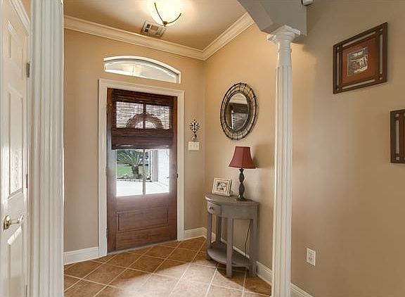 This adorable 3BR/2BA home is in move in condition! Beautiful kit with re-faced cabinets, soft-close drawers, newer stainless appliances, pantry door with glass front, bkft bar; den with wd floors & corner FP; granite in kit & baths; new light fixtures; crown molding in den, dining, mstr & mstr bath; new shower door in mstr bath; tray ceiling in den & mstr; blinds throughout; all wood shelving; rear door with blind inserts leads to patio overlooking rear yard; flood zone C. You will not be disappointed!