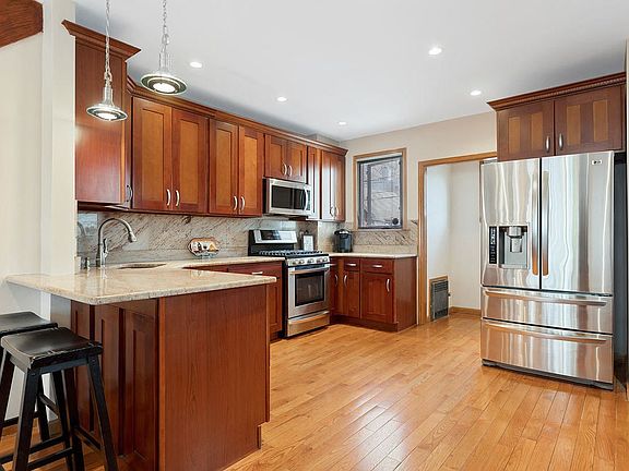 Welcome to 6931 67 St, a beautifully renovated single family home in Glendale, Queens. This semi detached measures ~1,773sf of living space on a 20x95 ft lot with 3 floors, 3 bedrooms, 2 full baths, finished basement, garden and private parking for two cars. Nearly every detail of this home has been improved, renovated or replaced by its current owners creating a home that is ready to offer the next owner years of enjoyment. First floor features an open concept with living, dining and kitchen perfect for hosting large gatherings and entertaining. The chef's kitchen offers generous room to operate with granite countertops, shaker cabinets, stainless appliances, bar seating, plus breakfast bar. Additional highlights include gleaming oak hardwood floors, recessed lighting, dining room chandelier, and pendant counter lighting. Ascend the beautifully crafted staircase to the second floor which features three spacious sunlit bedrooms with ceiling fans and thru-wall air conditioning. A full tile bath features a new vanity and glass block window for natural light. Additionally, four closets offer excellent storage. On the lower level, the finished basement has a laundry room, recreation room, full bath and storage. It's perfect for a home office or additional recreational space with good ceiling height and excellent natural light. Out back, a paved shared driveway leads to a one car garage with room for second car outside. There's plenty of space for grilling outdoors and an outdoor dining area. Additional highlights include Burnham gas furnace, hot water heater (2018), and new roof with leaf filter system (2018) with 20 yr warranty. Located just steps from Ridgewood and Bushwick but with a feeling that miles away. The M subway Fresh Pond Rd is a short ten minute walk and local and express buses to Manhattan can be found on Myrtle Ave. Local favorites include award winning Finback Brewery and Zum Stammtisch restaurant. If you want to be in nature then beautiful Forest Park and the Ridgewood Reservoir are also just minutes away. Come discover the beauty, value and convenience of Glendale today!