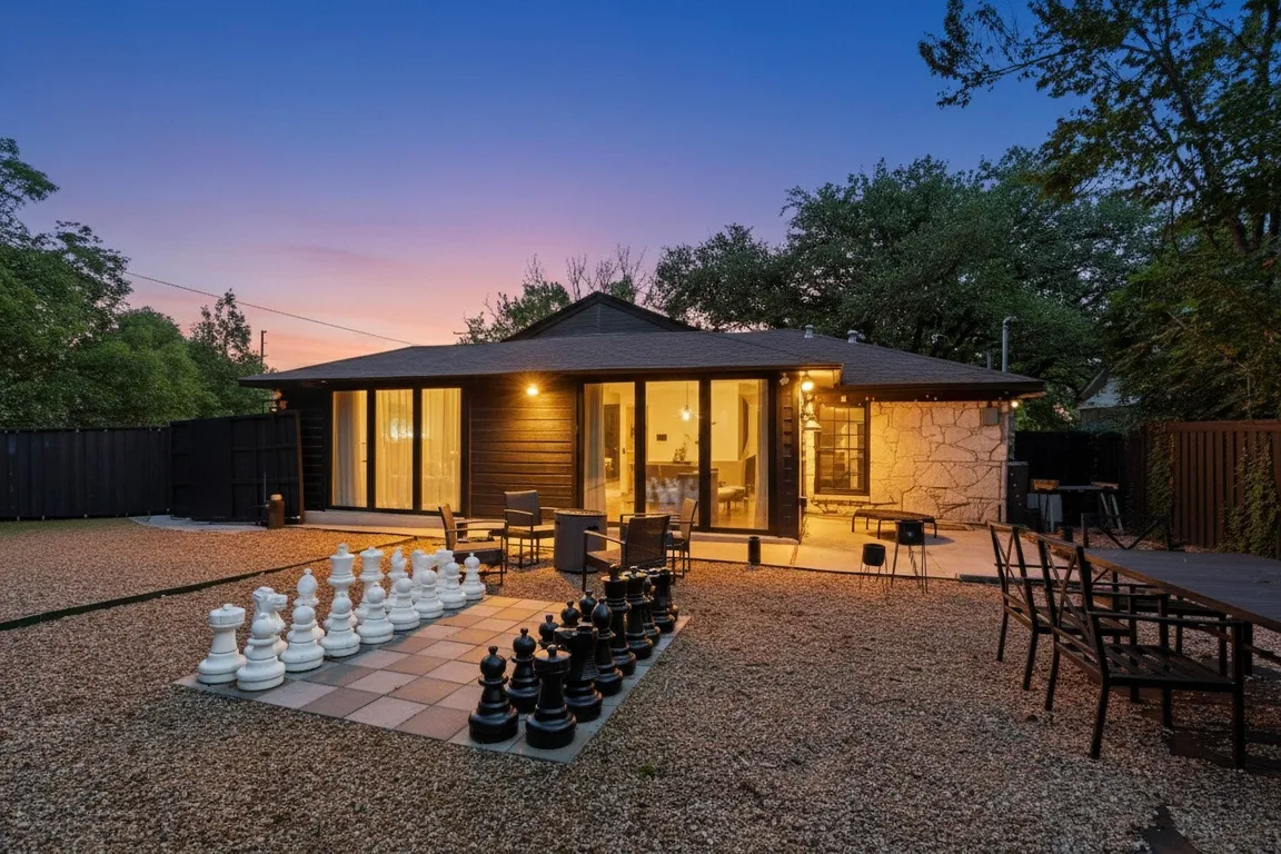 Double-sided fireplace enclosurePea gravel play yardAbundant natural lightPrivate back patioFloor-to-ceiling stackable glass doorsPremium appliancesBrass delta vero fixtures