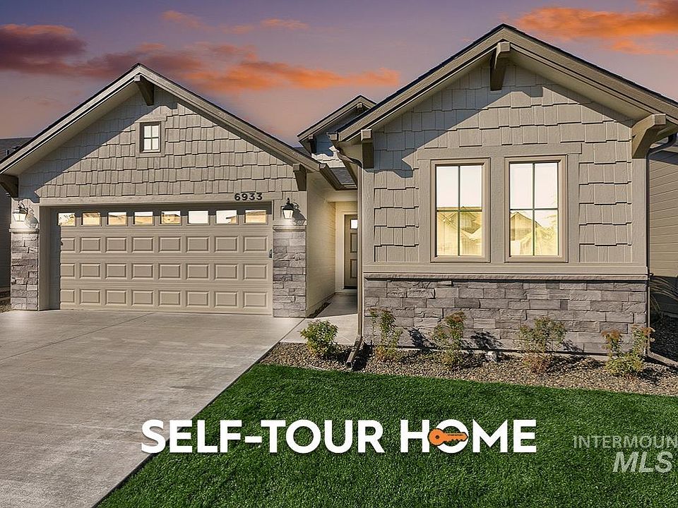 The HAVASU MODEL| Blackrock Homes. SELF GUIDED TOUR HOME (instructions onsite). Enjoy COMMUNITY POOL, pickle ball courts, walking paths, community dog parks & playground. Located in the gated neighborhood: The District at Skybreak Estates w/private pickle ball court, dog park & private streets. Featuring elevated finishes; upgraded cabinets, Bosch appliances, upgraded lighting plumbing & flooring. Baths feature tile floors, tile showers & under mount sinks. Generous sized great room, kitchen & dining room perfect for entertaining. Private guest suite & 3rd bdrm or office space gives you everything you need and nothing you don't. Oversized garage w/additional 16' x5' shop space in garage- perfect for storage, work bench, home gym, etc. INCLUDES FULL VINYL FENCING & FRONT & REAR YARD SPRINKLERS & LANDSCAPING. Just Blocks away from Discovery park. Easy access to YMCA, the interstate, Meridian, shopping, dining, & entertainment.