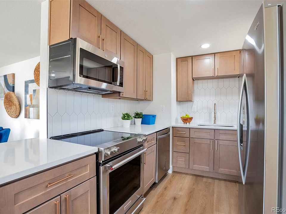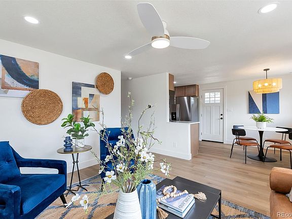 Nestled on a desirable corner lot in the Columbine Acres neighborhood, this beautifully updated home blends modern finishes with comfortable living. Featuring 3 bedrooms and 1 bathroom, the home offers an open and inviting layout with luxury vinyl plank flooring throughout. The kitchen has been fully remodeled with quartz countertops, stainless steel appliances, and custom cabinetry. The kitchen opens directly onto the dining area, making it perfect for everyday meals and gatherings. The living room is warm and inviting, making it the ideal spot for cozy movie nights. The bathroom showcases custom tilework, adding a touch of elegance and detail. Additional highlights include central AC, new windows, and a convenient stackable washer and dryer tucked neatly behind a stylish barn door. Step outside to enjoy the private patio, where you can entertain, dine, or simply relax. Its convenient location provides easy access to shopping, dining, and everyday amenities. This move-in-ready gem is a wonderful opportunity to own a fully updated home in a highly sought-after community. This property qualifies for a free temporary 1-0 buydown where you will receive a 1% lower interest rate for the first year. Please contact the Listing Agent for further lender details.