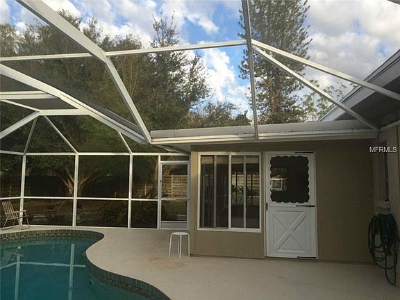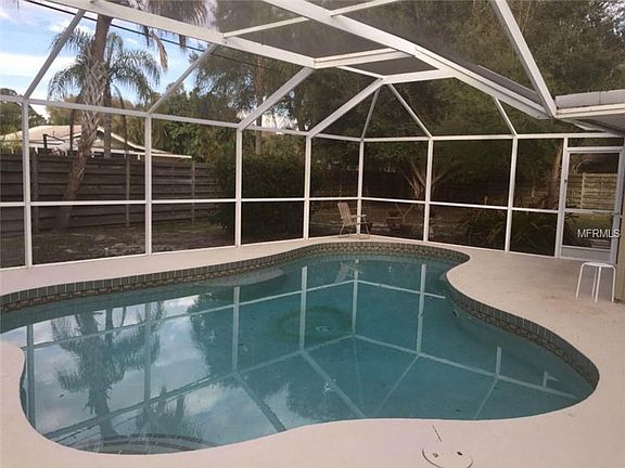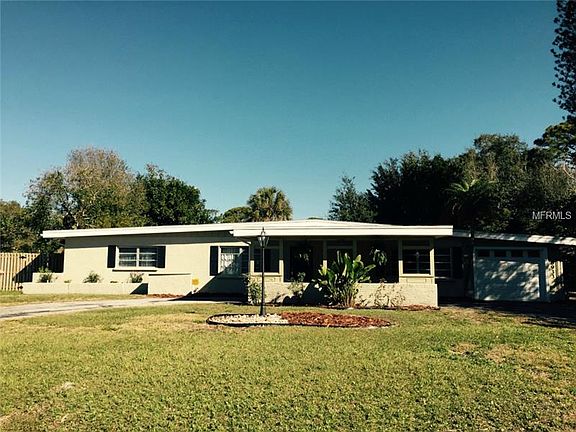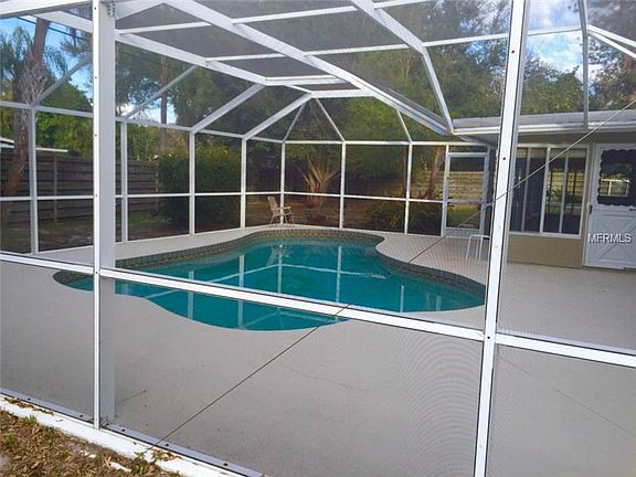 Mid Century charmer in desirable Whitfield Country Club Estates. Home features open living / dining / kitchen with vaulted ceilings, skylight and Spanish tile. All remaining floors (and under tile) is beautifully restored terrazzo. Both bedrooms are good size, each with large walk in closets. French doors lead to a large bonus room / den off main living area that could be used as third bedroom / guest room. Inside utility area has access to the one car attached garage. Large enclosed lanai with kitchen pass through leads to the beautiful caged pool and expansive fenced yard. New roof, fresh paint, crown molding and loads of character.