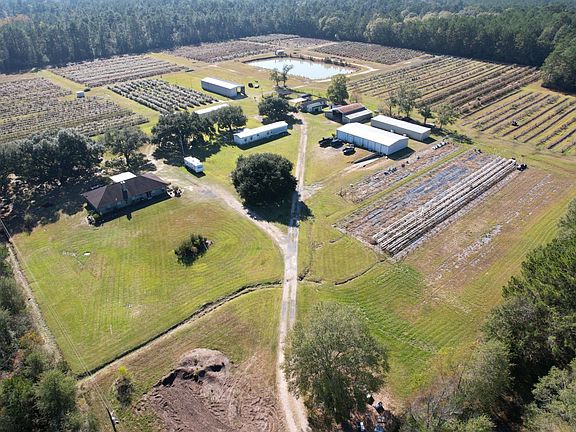 The majority of the acreage is dedicated to managed blueberry fields, barns, and a centralized processing area, with a smaller portion remaining in native timber. Improvements include a processing facility with loading ramp, multiple barns for equipment and storage, a scenic pond, two onsite trailers for seasonal workers, and a one bedroom, one bathroom apartment with kitchen and closet located within the processing barn. A detailed list of farm equipment, machinery, and tools will be provided upon request.