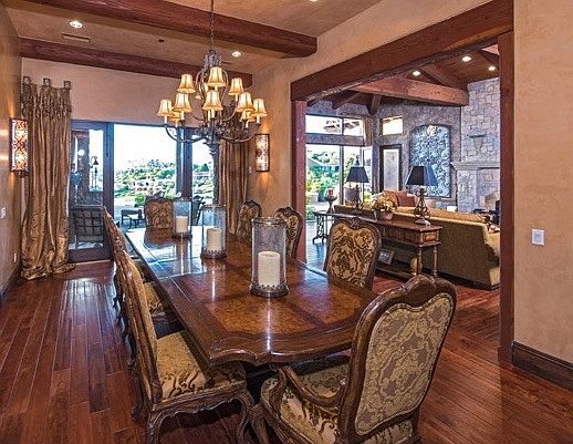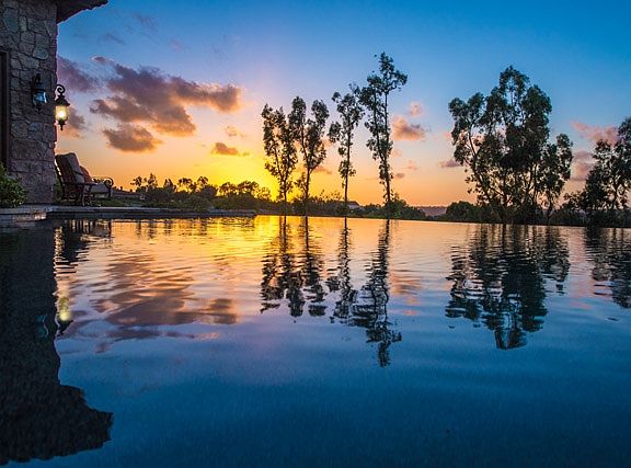 This charming home will capture you the minute you walk thru the beautiful wooden entry doors. In all the major rooms, you are met by a wall of glass that seamlessly join interior rooms to the outdoor spaces & beyond to the panoramic golf course view. Beautiful library, wine room, a cooks kitchen, outdoor living room & BBQ. Pool has vanishing edge facing the lakes & fairways. Located in the The Farms a 24-hour guard gated community, 5 star Rancho Valencia Resort & Spa a stone throw away.