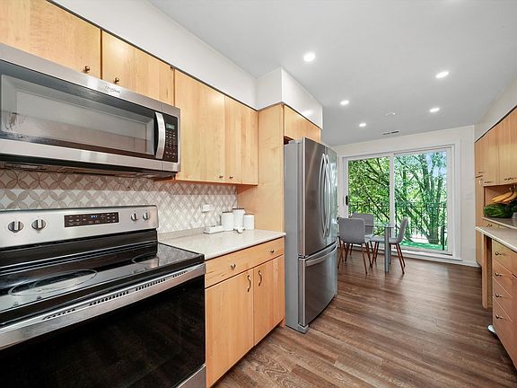 Welcome to Forest Court Condominiums, where you'll find this exquisite TOP FLOOR CORNER condo with luxurious finishes throughout.This spacious 2Bed/2Bath residence offers a bright and inviting living area and separate dining, perfect for entertaining. Step into your stunning Chef's kitchen with newer stainless steel appliances, ample cabinetry and counter space, and two sliding doors leading to your very own private balcony, the best spot for relaxation. Retreat to your master bedroom with ensuite bath and massive walk in closet. Second bedroom is also very generous ins size and second full bath is beautifully renovated. Other notable features include luxury vinyl flooring throughout, reclaimed exposed brick accent wall, in-unit washer/dryer, and garage parking included in the price. Explore the advantages of the Niles free bus service and take pleasure in the plethora of nearby restaurants and stores! Steps away is the Forest Nature Preserve with walking/biking paths, open fields, picnic tables and very often neighboring deer. The Forest Court Condominium building is lovingly maintained ensuring a delightful living experience. Don't miss the opportunity to call this lovely condo your new home! Take a 3D Tour, CLICK on the 3D BUTTON & Walk Around. Watch a Custom Drone Video Tour, Click on Video Button!