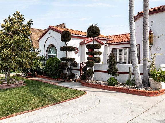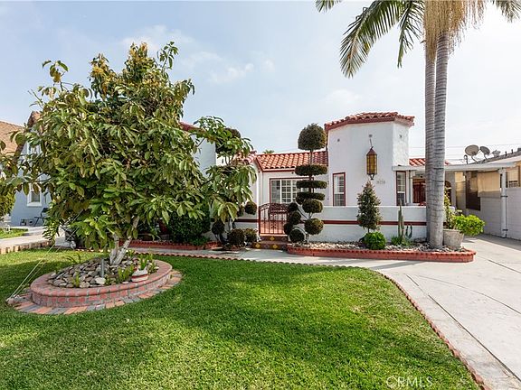 Welcome to this stunning Spanish style home, perfect for those who love to entertain and relax in style. As you enter the home, you are greeted with a spacious living area complete with a fireplace, beautiful tile floors, arched doorways and ceiling, plus a bonus room that can serve as an office space. Furnished with exposed wood beams, the formal dining area is perfect for meals with friends and family. The kitchen features a skylight surrounded by recessed lighting, custom cabinetry, tiled countertops & backsplash, updated stainless steel appliances, and the convenience of a breakfast area. Featuring three respectively sized bedrooms including a master and two bathrooms, which offer plenty of space for guests or a growing family. You will also find comfort knowing the home has central heating & air conditioning, double pane windows with shutters, copper plumbing, and a utility basement. Just steps away, the backyard retreat awaits with a sparkling pool, built-in grill island and a roofed outdoor bar, perfect for entertaining. Here you have direct access to a laundry room, three-quarter bathroom and the two-car garage with the potential of an ADU. Imagine hosting pool parties, events or enjoying a quiet evening under the stars with loved ones. Located in a very desirable neighborhood, you will benefit from a short walk to drop off the kids at Miles Ave Elementary or Gage Middle School and just minutes away from the 710, 110, 105, 10, 5 freeway. This Spanish style home is a true gem that offers the perfect combination of style and comfort, ready for the next family to enjoy and appreciate!