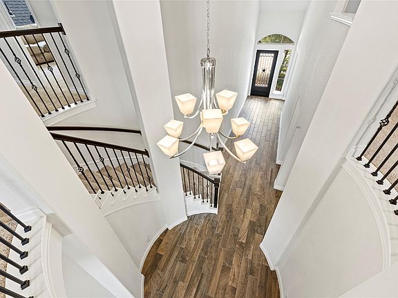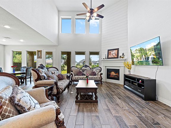 Discover 6938 Amberwing Way, a Perry-built home that blends modern efficiency with lakeside tranquility in the sought-after Cane Island community. With no back neighbors and a serene lake view, it offers rare privacy alongside eco-friendly upgrades such as a solar system with backup battery, insulated low-E windows, and smart irrigation. Inside, soaring 18-ft ceilings and a wall of windows flood the living room with light, anchored by a cozy fireplace and open flow to the gourmet kitchen with granite counters, premium appliances, and a large island. The primary suite is a retreat with curved windows and spa-style bath, while upstairs a sunlit game room provides versatile living space. With 5 bedrooms, home office, and formal dining, this home balances comfort with sophistication—all set within Cane Island’s resort-style amenities, scenic trails, café, fitness center, pools, and top-rated Katy ISD schools.