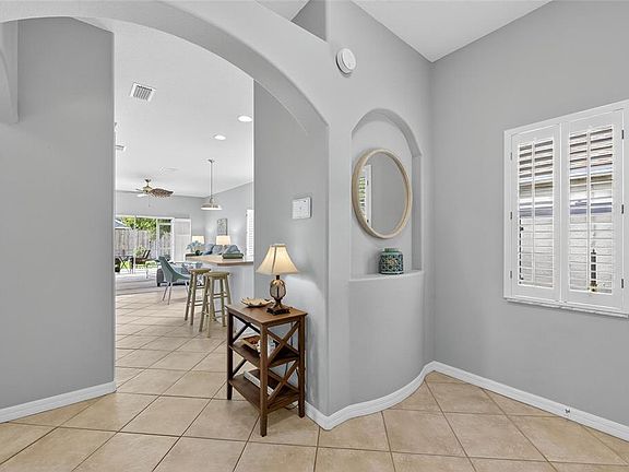 Charming light and bright home in Covington Park in Apollo Beach. This beautiful home has porcelain tile throughout the main living areas, open floor plan, large primary bedroom with bath ensuite, 2 additional bedrooms and bathroom. Spacious lanai extends the full length of the home looking out onto the private fenced in grassy yard. New landscaping, newer roof (2020), new AC (2025), upgraded insulation for energy efficiency, newer fencing (2023), new exterior painting (2025), plantation shutters, security system (2025). Covington Park offers a community pool, playground and tennis courts.