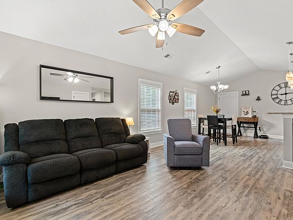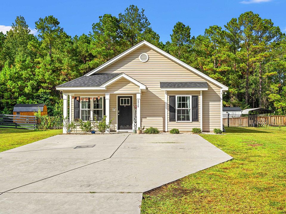 Welcome to this charming 3-bedroom, 2-bathroom home situated on a spacious lot with no HOA! This single-level home offers an open floor plan, featuring a vaulted ceiling in the living area. The kitchen is thoughtfully designed with granite countertops, stainless steel appliances, and a breakfast bar. The master suite includes a tray ceiling, walk-in closet, and a private bath. The split-bedroom layout provides added privacy, and luxury vinyl plank flooring runs throughout most of the home. Enjoy outdoor living with a covered front porch, a rear covered patio, and a spacious fenced in backyard. An attached exterior storage room adds convenience. Located just minutes from downtown Loris, major highways, and within easy reach of the beach. Don’t wait—schedule your showing today and make this beautiful home yours!