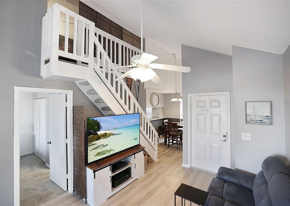 Under contract-accepting backup offers. BRAND NEW 2025 ROOF! PRICED. TO. SELL. Welcome to this beautifully updated TOP FLOOR CORNER UNIT condo that perfectly blends comfort, style, and convenience. This 1-bedroom, 1-bathroom home features SOARING CEILINGS and a SPACIOUS LOFT area that offers flexibility for a home office, guest space, or creative retreat. Step inside to find NEW laminate flooring and NEW carpet throughout, creating a modern yet cozy ambiance. The open-concept living and dining area is filled with natural light and flows effortlessly into the kitchen, making entertaining or relaxing at home a breeze. The high ceilings in the dining and living room add a grand, airy feel that truly sets this unit apart. Enjoy your morning coffee or evening sunset on the private front balcony, an ideal spot to enjoy Florida’s sunshine year-round. The in-unit laundry has been thoughtfully upgraded with a brand-new washer and dryer, making everyday chores simple and efficient. The spacious bedroom features generous closet space, and the full bathroom offers comfort and functionality. Upstairs, the loft adds valuable bonus space and overlooks the living area, further enhancing the open and inviting layout. Located within walking distance of Tyrone Mall and Pinellas Trail, this condo provides easy access to shopping, dining, recreation, and entertainment. Plus, you are only a short drive from the stunning Gulf beaches — perfect for weekend getaways or daily sunset strolls. The monthly HOA fee COVERS: water, cable, and WiFi, as well as access to community amenities including a sparkling pool (& SPA) and well-maintained tennis courts. You are also safe from flooding in here, as Stones Throw is located in flood zone code "X" (no flood insurance required). This pet-friendly community welcomes your furry companions, making it easy to feel right at home. Whether you’re a first-time buyer, snowbird, or investor, this condo offers an exceptional opportunity to enjoy low-maintenance living in a prime location. Don’t miss your chance to own this stylish and well-maintained home — schedule your private showing today! (ROOF ASSESSMENT HAS BEEN PAID BY SELLER)