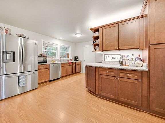 Newer wood cabinetsBeautiful granite countertopsSurrounded by nature