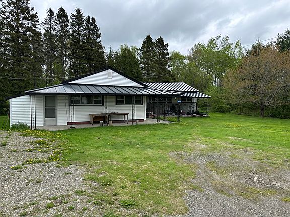 Hodgdon ranch home on surveyed land! New 2 bay garage, updated metal roof on house, pellet and forced oil heat. Spacious layout inside home. Interior needs some tlc but very sound and solid with full foundation. Ideal location only 6 miles to Houlton.