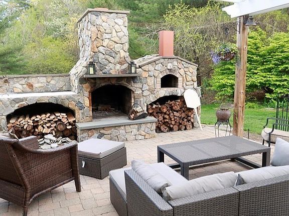 Beautiful and bright spacious home on spectacular lot, backyard Oasis and a large farmers porch. PRIVATE backyard with Fireplace,Pizza oven on one side of large patio with counter and sink on the other. Over looking professionally landscaped yard with lovely stone water feature. Freshly painted interior. Large open eat in kitchen with Center island and wine-cooler/fridge. Living room with fireplace, vaulted ceiling and skylights. Family room with skylights and 3 sliders to back yard. Office/den/library with built in cabinets and shelves. Large dining room. 4 bedrooms upstairs. 2nd floor laundry! 3 full baths remodeled with imported tile. 2 bonus rooms in the finished basement perfect for play areas or just getting away to relax. 2 car garage under. New Furnace 1/2019, new roof and newer windows. Septic system 2017. SimpliSafe security system. Generator hook up. Well for irrigation. Nest programmable thermostat.NOTHING TO DO BUT MOVE IN!