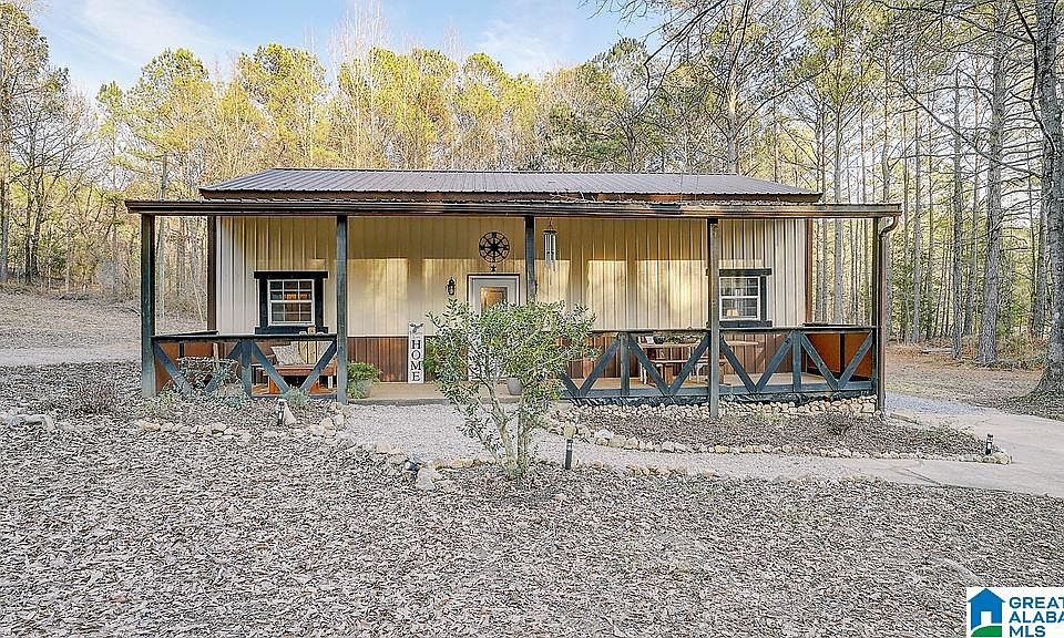 Discover your Perfectly Imperfect Place! This newly-built steel-sided cabin, nestled on 1 acre amidst 100 pristine acres in Alpine, is minutes away from Desoto Caverns, Kylmuga Grist Mill, Covered Bridge, Coosa River, and Logan Martin Lake on the Coosa River. Enter from the covered porch to 12' walls and a 15' high peak. The open-concept living room/dining/kitchen features rustic open shelves on brick-paneled walls. For remote work, there's a built-in desk with fiber optic high-speed internet. All electric with a private well and septic. A few steps from the 12x20 back deck, find a powered 12x20 shop with lights and a 50-amp RV plug. You will find peace, quiet, and serenity in your little cabin in the woods.