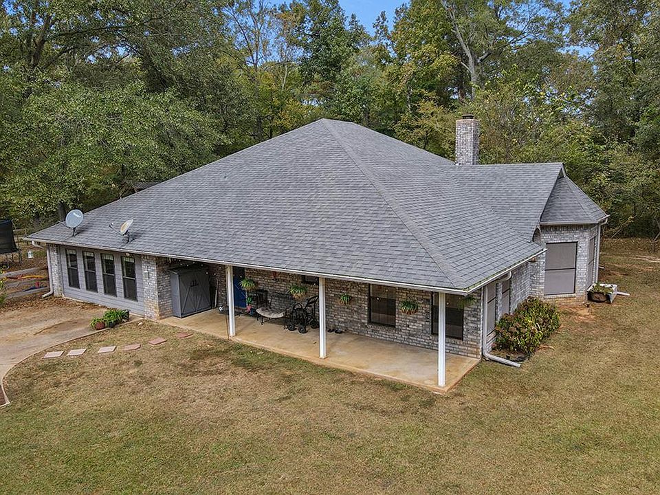 Spacious Brick Home on Nearly 14 Acres — Country Living at Its Finest. Nestled on nearly 14 beautiful acres, this brick home sits on a permanent foundation and offers the perfect blend of comfort, space, and scenic charm. With two expansive porches — one overlooking the peaceful backyard and the other conveniently located off the parking area, living room, kitchen, and dining room — there's no shortage of spots to relax and enjoy the view. Inside, the home features three large bedrooms and two full bathrooms. The master suite is a true retreat, boasting dual vanities, a massive custom-tiled shower, a large soaker tub, and two walk-in closets. Two generous living rooms provide ample space for entertaining or unwinding — one cozy with a fireplace, and the other impressively spacious for gatherings or recreation. The fenced backyard offers a safe and fun space for kids and pets, complete with a custom-built treehouse and serene views of the creek. Outdoors enthusiasts will also appreciate the large pond — ideal for fishing, or perfect for watering cattle or horses. This property is a rare find — combining the peace of country living with all the comforts of a modern home.