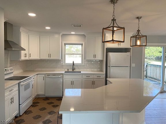 Move right in to this totally updated split level home with an open concept floor plan featuring Kitchen/Dining Room/Living Room all open and beautifully renovated.New white kitchen cabinets/quartz countertops/tile back splash /refinished hardwood floors on 2nd & 3rd floors. Gas fireplace in Living Room. Den/office /possible 4th bedroom has new laminate flooring. The Interior has been painted with neutral colors. Master bedroom included hardwood floor/master bath with shower stall/vanity, previously updated. 2 additional bedrooms on 3rd floor with hardwood floors and ceiling fans. Main bath is brand new as well. Finished basement with laminate flooring in the large rec room plus 2 extra storage rooms. New siding/front porch/sidewalk. Sliders off Dining Room to deck.