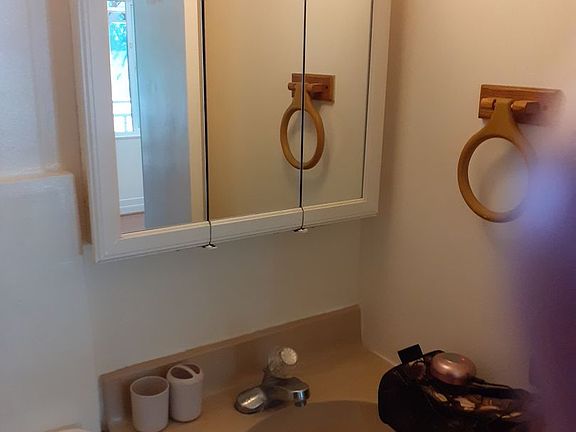 Studio has bathroom, furnished kitchen area, furnished living areas, Queen bed / linens, ETC. Share on-site laundry .
