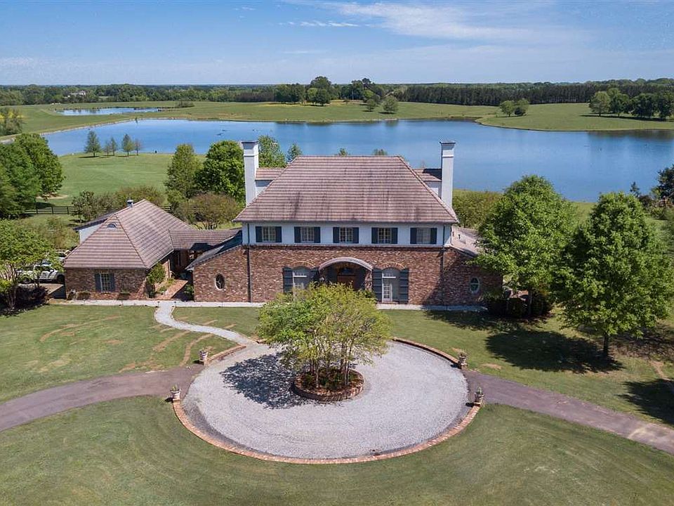 It's nearly impossible to assign a monetary value to living somewhere surrounded by such natural beauty! 694 Mount Leopard is a private retreat on 23.6 acres in Madison County. The sunrises and sunsets over the quiet waters of this 35-acre spring fed trophy bass fishing lake are magnificent. The migrating white pelicans, grey herons, geese, egrets and many other varieties of ducks and birds are our co-habitants. Upon entering the gated drive, you are touched by the serenity. This winding drive arrives at an architecturally master-built expansive family home thought to be among the most notable in Madison County. With over 8,500 square feet, this European Farmhouse pays homage to old-world architecture and workmanship. One immediately notices the heavy slate roof and tall twin chimneys pulling up to the circular drive. This exceptional home includes a number of design 'ingredients' of an A. Hays Town residence. It has over 150,000 genuine antique bricks on the exterior, in the interior and on patios and courtyards. Upon entering the home, the eye is drawn immediately to the massive antique beams in the Living, Dining and Foyer and the 14 ft ceilings showcase them beautifully. Behind the beams is pickled 2 X 4 heart pine siding. These were installed long before shiplap became popular. The reclaimed antique wide-plank (9 inch) floors lend secure footing of perfect proportion and steal the show! On the back of the property, a huge 60 ft long, 14 ft tall iron arbor supports a living canopy of wisteria and is breathtaking when in full bloom. The arbor has 8 eleven-foot stone columns and is floored with Pennsylvania Blue Stone. With 3 sets of French doors opening onto the patio, the 120' X 20' area is perfect for entertaining. There is a covered porch off this patio that has bi-fold shutter doors with cremones. A fireplace kiva provides warmth on chilly evenings. The master bedroom has private access to this area that lends magnificent views of the property and lake. Some other features include a large Gourmet Kitchen, a Butler's pantry that provides excellent hosting and storage duties, 5 Bedrooms, 7 Baths, 2 down and 3 up, plus a private guest quarters with separate entrance. Also, a large media/game room, and a boathouse with two slips, lifts and pier for swimming and fishing. While this waterfront sanctuary may feel centuries away from the everyday, it is only minutes to I- 55, Township of Livingston, and close to all of Madison Conveniences! 694 Mount Leopard is the land where nature renews the soul and families strengthen their connections to one another! Please see drone footage/video.