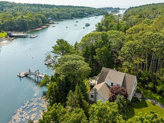 Great family compound located in East Boothbay that will have something for everyone! This property faces East so you can enjoy the sunrises, moonrises and the colorful sky at sunset. Deep water dock and mooring on Little River, which is a protected inlet from the Atlantic Ocean. The waterfront has a small beach and a great area for sitting by the water and watching the dam at Boothbay Shores. The main house contains 3 bedrooms, 3 baths with an open floor plan which is great for entertaining. One floor living with a primary bedroom or take the option of a primary bedroom on the 2nd floor with a deck overlooking the water. Large kitchen with plenty of cabinet space and a breakfast nook, family room and office for working at home. Large detached heated 3 story barn with a 2-car garage, ½ bath, laundry with a 2 bedroom, 1 bath apartment on the 2nd floor. The lower level has a large workshop with a small garage door. A beautiful setting that is nicely landscaped and is well maintained. East Boothbay is a gem that offers a General Store, boat launching ramps, a waterfront park, Boothbay Region Land Trust preserves and just a short distance to Ocean Point.