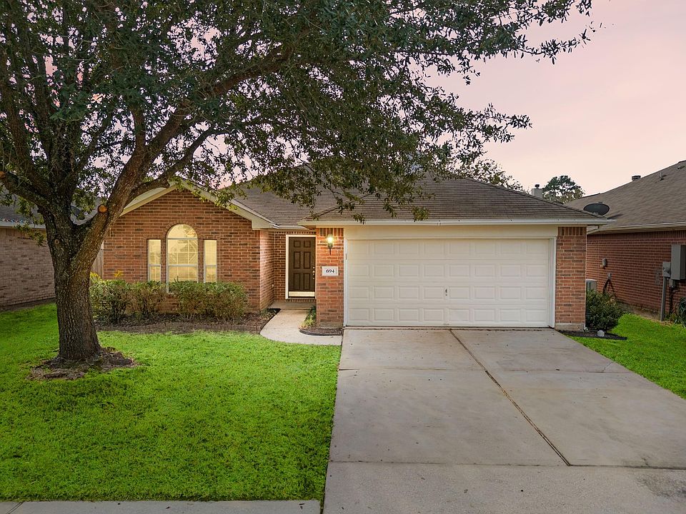 Welcome to this charming single-story brick home in peaceful Alvin, where timeless curb appeal meets a warm, inviting interior. This 3-bedroom, 2-bath home with a 2-car garage offers the perfect balance of comfort and style. Sunlight fills the living room, highlighting wood-look floors and a cozy stone-surround fireplace, perfect for relaxing evenings or weekend gatherings. The open kitchen is bright and stylish, with granite countertops, rich wood cabinets, and a stainless steel gas range, making it the heart of the home for cooking, entertaining, or homework. The primary suite is a serene retreat with natural light, a soaking tub, and a spacious walk-in closet. Additional bedrooms are versatile and welcoming. Step outside to a fully fenced backyard with a deck/patio and storage shed, ideal for morning coffee, weekend grilling, or playtime. Enjoy the peaceful charm of Alvin, close to parks, shops, schools, and all the conveniences of suburban life.
