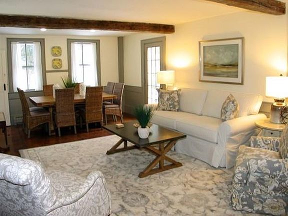 THIS IS A SUMMER RENTAL ONLY. This lovely farm house features luxurious accommodations. Four of the bedrooms have en-suite bathrooms, three of which include a bathtub and shower. All bedrooms are equipped with a split air conditioner. There is a formal living room as well as a family room with TV and additional dining table to eat or play games. Old wooden beams give the property a historic old world feel with all the modern conveniences. You can lounge on the patio taking in the mature landscaping. Lambert's Cove Beach Access.