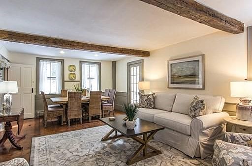 West Tisbury Farm House circa 1810 (known as "the Seahorse") has all the charm of "days gone by" but with many upgrades and conveniences expected today. Antique "hand hewn" post and beam character is enhanced with WIDE (some boards are 20 inches wide) pine plank flooring and a massive brick Rumford fireplace. Plenty of room for all friends and family with 4 bedrooms (all en-suite), 1 (1/2) bathroom and 2 bonus rooms PLUS an office. Oustide is a lovely yard with free standing garage/workshop. Outdoor shower and mini-split air conditioning too. Being sold turn-key! Located in quiet North Tisbury close to Lambert's Cove Beach and Long Point Beach. With great rental income history (house sleeps up to 10 people!) this is one not to be missed. Also, this is a perfect property for a B&B or corporate retreat!