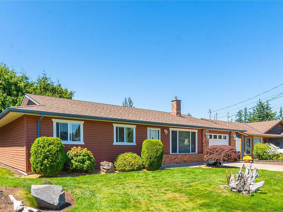 Welcome to your charming 3-bed, 2-bath rancher, nestled on the oceanside of the highway in a highly sought-after Parksville neighborhood. This 1,356 sq ft residence offers comfortable living on a quiet street, set on a beautifully landscaped 6,041 sq ft lot w/a private backyard. Step inside to an inviting interior with fir doors and trim, rich laminate flooring, and a cozy gas fireplace. The functional layout provides two distinct living spaces, including a separate rear family room with patio access. The kitchen features original oak cabinetry, an upgraded ceramic sink, and crisp white appliances. The primary bedroom includes a 2-piece ensuite w/heated tile, while the main bath offers a skylight, air-jet tub, and heated floors. Other features include vinyl windows, a near-new 60-gallon HWT, upgraded attic insulation, a single garage, and a garden shed. With a roof approx. 13 years old, this well-maintained home is a great find, just a short stroll from the beach, parks, and shopping.