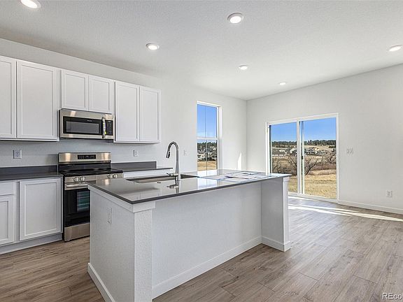 This stunning new ranch-style sits on a fantastic homesite backing to a greenbelt and includes full landscaping! Experience the vast open layout on the main floor, adorned with EVP flooring. The gourmet kitchen boasts stainless steel appliances, quartz countertops, and a sizable island effortlessly connecting to the cozy breakfast nook and the impressive great room. Two guest bedrooms, complemented by a full guest bathroom, provide plenty of room for guests. Your secluded owner's suite at the back showcases a lavish spa-inspired en-suite bathroom and a generously proportioned walk-in closet. Conveniently the laundry room is positioned near the bedrooms, doubling as a practical drop zone. Save time and money knowing full landscaping is included! Elizabeth is a quaint city offering great shopping down Historic Main Street, as well as ample outdoor recreation opportunities at nearby parks, baseball fields, trails and more. **Contact Lennar today about Special Financing for this home - including below market rates** Terms and Conditions Apply**