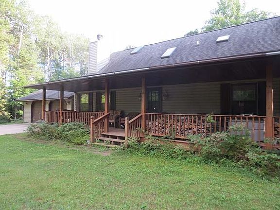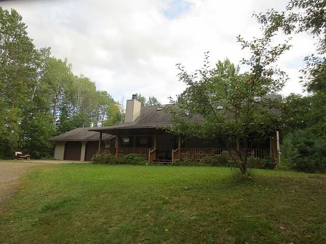 So, the 210 feet of frontage on Sugar Camp Lake caught your attention!? Just to clarify, the frontage is an added bonus to this country home. The home is situated back away from the water and there isn't a water view. Lets discuss the main selling feature, the home! Built in 1998 it is a 1.5 story home with main floor laundry, open concept kitchen, dining room and family room, main floor master bedroom and living room with a fieldstone wood burning fireplace. The upper level of the home has two large bedrooms with tongue and groove ceilings, landing area and full bath. The basement is a walkout with a large bay window, stubbed in bathroom and is unfinished. Front covered porch, a deck, nice yard and a two car detached garage complete the exterior of the home. Did I forget to mention there is 5.82 acres of land that abuts Plum Creek Land. So you have hunting, fishing, wildlife, recreation and privacy right outside your door. Call for your appointment today. (No pathway to waterfront)