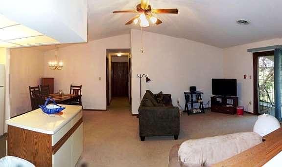 This charming, very well maintained upper unit features; private northern country view, open concept, walk-out balcony, cathedral ceilings, master suite with spacious walk-in closet, large second bedroom, updated bath fixtures, convenient laundry, fresh paint, newer carpet, all appliances included, all with an attached one car garage. One year HMS Home Warranty included in sale!! Also most furnishings negotiable.