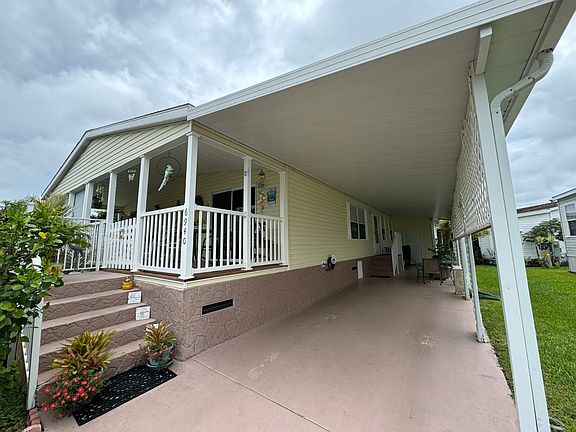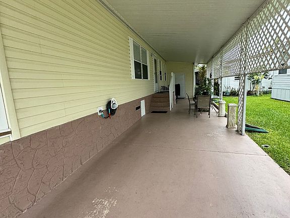 This charming 3 bedroom, 2 bathroom home features laminate flooring throughout, creating an easy to maintain living space. The open concept area seamlessly connects the living room, dining room, and large kitchen. The kitchen is equipped with white appliances, including a refrigerator, stove, microwave, and dishwasher, and offers plenty of cabinet space for all your storage needs. A convenient eat-in counter can accommodate two barstools, perfect for casual dining or entertaining. Additionally, a cozy breakfast nook is situated off to the side of the kitchen. The master bedroom boasts a spacious walk-in closet, providing plenty of storage for your wardrobe. The additional bedrooms provide ample room for relaxation, and ceiling fans are installed throughout the home to enhance comfort. A separate laundry area with a washer, dryer, and storage shelves keeps everything organized. Outside, the covered porch with roll-down solar shades offers a pleasant spot to enjoy the outdoors in any weather. A shed provides extra storage for tools and other items, while the carport has room for two cars. This home combines functionality with comfort, making it an ideal choice for any family. Deerfield Lakes is a 55+ community. The clubhouse includes a gym, swimming pool, mini-golf and pickleball. Give us a call today to schedule a viewing. Financing is available - ask us how !