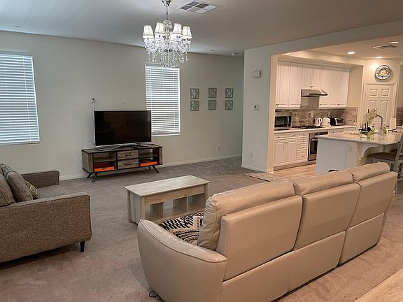 Fully furnished with refrigerator, washer and dryer, kitchen appliances and kitchenette, microwave oven, 3 car garage, community pool