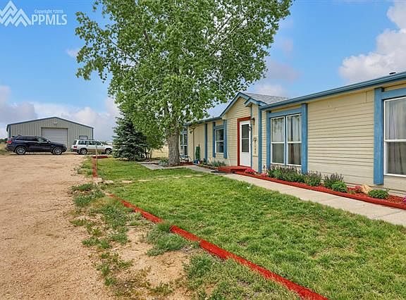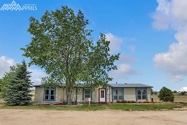 Fantastic home with quality finishes throughout and views to die for. Large kitchen w/breakfast bar & separate dining room. Large living room with pellet stove. Lovely master suite with walk-in closet and updated attached 5 piece master bath with freestanding tub & separate shower. Two more nice sized bedrooms and another updated bath. Laundry/mud room. Oversized and heated 36x30 garage/shop with power and water. The garage has a ten-foot tall RV door. All appliances INCLUDED! The propane tank on site (owned by the seller and will stay with the house). Over 5 and a half acres with a fenced section behind the house and zoned for horses. RV parking. This property is a GREAT value, not to be missed! Only minutes to Falcon and close to Schriever and Peterson Air Force Bases.