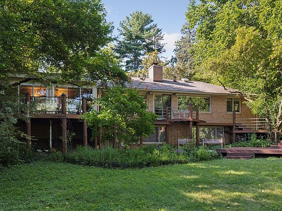 new roof was installed in 2020. Many quality improvements--three tile baths, rich slate flooring, custom cabinets and storage, solid surface countertops and upscale kitchen appliances enhance both floors; there are complete kitchens on both the main and lower levels. The lower level also features an over-sized bedroom, family room with