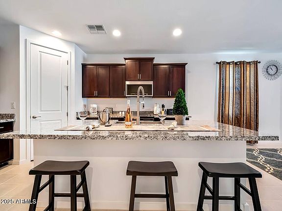 FULLY FURNISHED 4 bedroom 3 bath energy-efficient home available now!: Espresso cabinets with hardware, dusty white granite countertops, stone-look tile flooring and warm beige carpet in McClellan Ranch With convenient access to the Loop 202, this gated community provides close proximity to all the valley has to offer. Just minutes from local shops, restaurants entertainment, You will love the greenspaces and parks within this community. energy-efficient features cut down on utility bills so you can afford to do more living.* 1 King size bed in the master bedroom, 2 Queen beds and single bed in the other bedrooms.