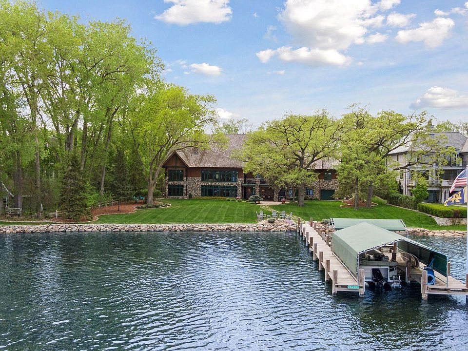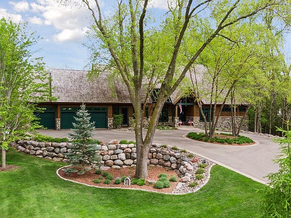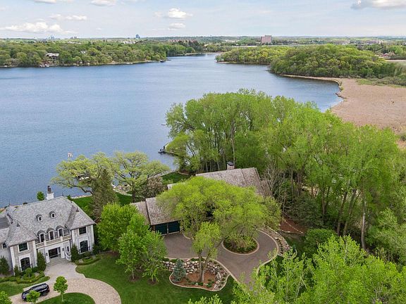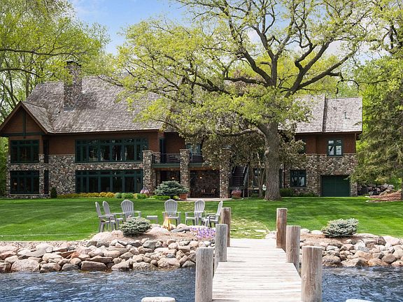 Welcome to this luxury urban retreat on Bryant Lake! Pristine custom-built lodge-style home complete with 4 ensuite bedrooms, 6 bathrooms, 4 fireplaces and 5 garage stalls. Boasting 163 feet of direct level lakefront, this sprawling lot is quiet and private, providing beautiful views across the widest part of the lake. It is tucked away at the end of the road, with a pond out front adding to the tranquility. The heart of this home has expansive living areas featuring soaring 24-foot vaulted beamed ceilings and stone fireplaces, making it an entertainer's dream. The gourmet kitchen is a chef's delight w/top of the line appliances, center island, and butler pantry ideal for culinary endeavors. Pamper yourself in the spa like main level primary bed/bath with water views. Enjoy lake living within 15 minutes of Southdale, Ridgedale, downtown Wayzata and downtown Excelsior. No need for a cabin, your north woods escape is right here in the metro! An elevator can easily be added to the home.