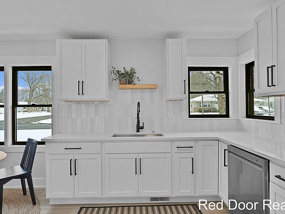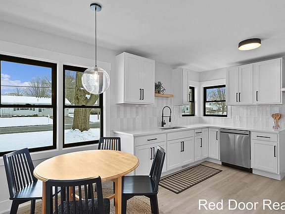 Completely remodeled Cutlerville ranch is ready to move into and will appeal to the most discerning buyer! The main floor includes 3 full bedrooms, 1 bath, a living room with fireplace, large kitchen with plenty of cupboard space, a screened in porch, and a bonus office or play room, leading to the attached 2 stall garage. The basement is newly finished with a large carpeted rec room, a brand new meticulously tiled bathroom/laundry room, and plenty of storage as well! Newer furnace and roof, brand new appliances. Come see this Red Door Home today!