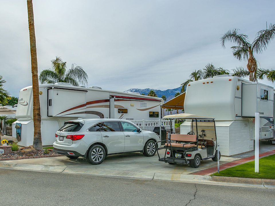Views Views Views! Absolutely breathtaking. Pad is in great shape. Privacy fence on patio side. Located on the back nine golf course, hole 5. A short block to the large El Saguaro clubhouse where you'll enjoy a lap pool, jacuzzi, coffee kiosk, hair/nail salon, pickleball courts, five star restrooms facilities/showers. Outdoor Resorts Palm Springs is a Five Star RV Resort Community combining luxury with affordability. It is a guard gated resort that sits on 137 beautifully landscaped acres with 27 holes of executive golf, 10 tennis courts, 13 pickleball courts, 8 swimming pools, a fully equipped fitness center, espresso bar, sports bar, beauty salon/barber shop, full-service restaurant, convenience store, 2 club houses, activities, special events and so much more.