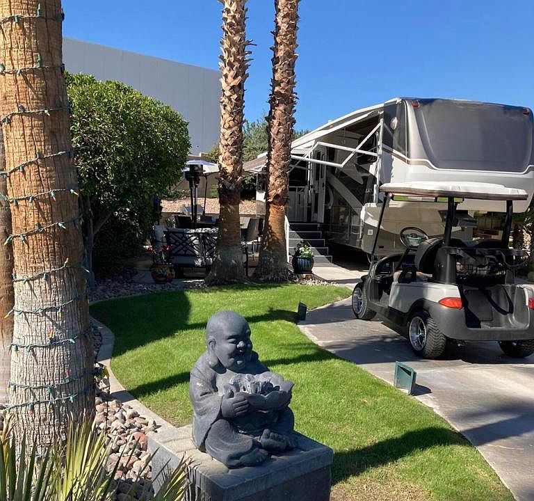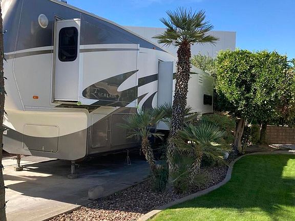 What a lovely winter holiday spot. Enjoy the the shaded patio area with upgraded furnishings. Beautifully maintained. Convenient location near the pool, spa and laundry facilities. Included in this package deal is a 2006 38' Escalade fifth wheel. Like new condition. Large residential refrigerator. Very gently used. Escalade is ORPS compliant to stay in the resort. This package is a gem!!!