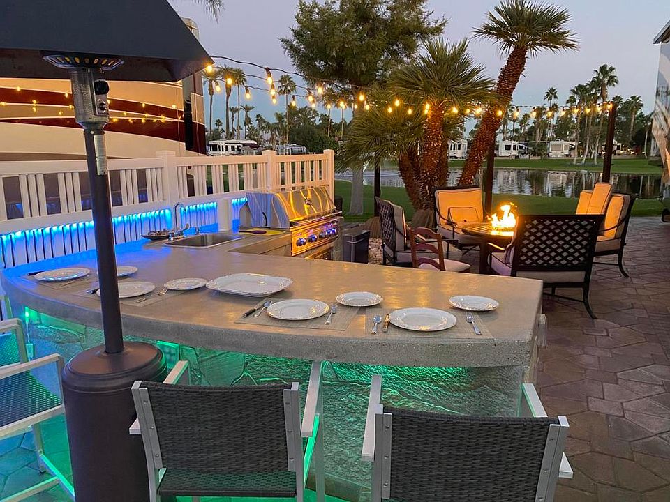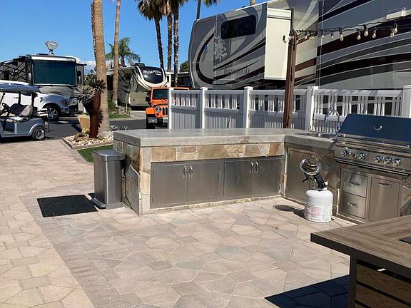 Golf course lot 1086Experience the peacefulness and views of living on a golf course lot yet having your privacy too. A very popular location within the resort as its walking distance to ES Clubhouse and just down the street from satellite E. This lot has gorgeous water/fountain views and towards the front you'll enjoy the snow capped mountains. Fully paved custom pavers along with drought maintenance free gardens. You'll love entertaining and dining El Fresco outside with the built in kitchen-sink with running hot/cold water and lights already strung waiting for the party. Security cameras already installed. Lovely location to call your own.
