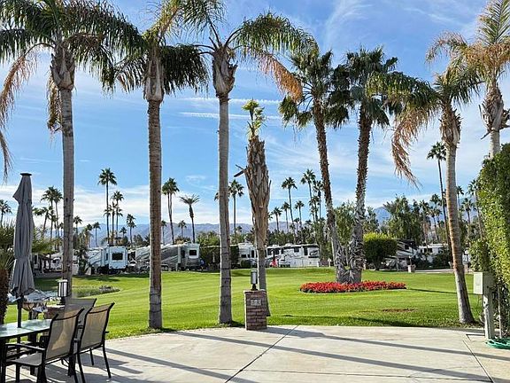 Lot 1132, In the morning, you’ll enjoy the laughter coming from the Pickleball courts. In the afternoon, you’ll watch golfers on the little nine course which is your backyard. In the evening you will walk across the street to join in on all of Orps activities. Large hedges on both sides of your lot, ideal for privacy Outdoor Resort Palm Springs (ORPS) is a Guard Gated 5-Star RV Resort Community offering an active and luxurious lifestyle featuring golf (27 holes), tennis, pickleball, swimming and more! Two clubhouses, fitness center, beauty solan, La Roma Restaurant on campus, dog park and more!